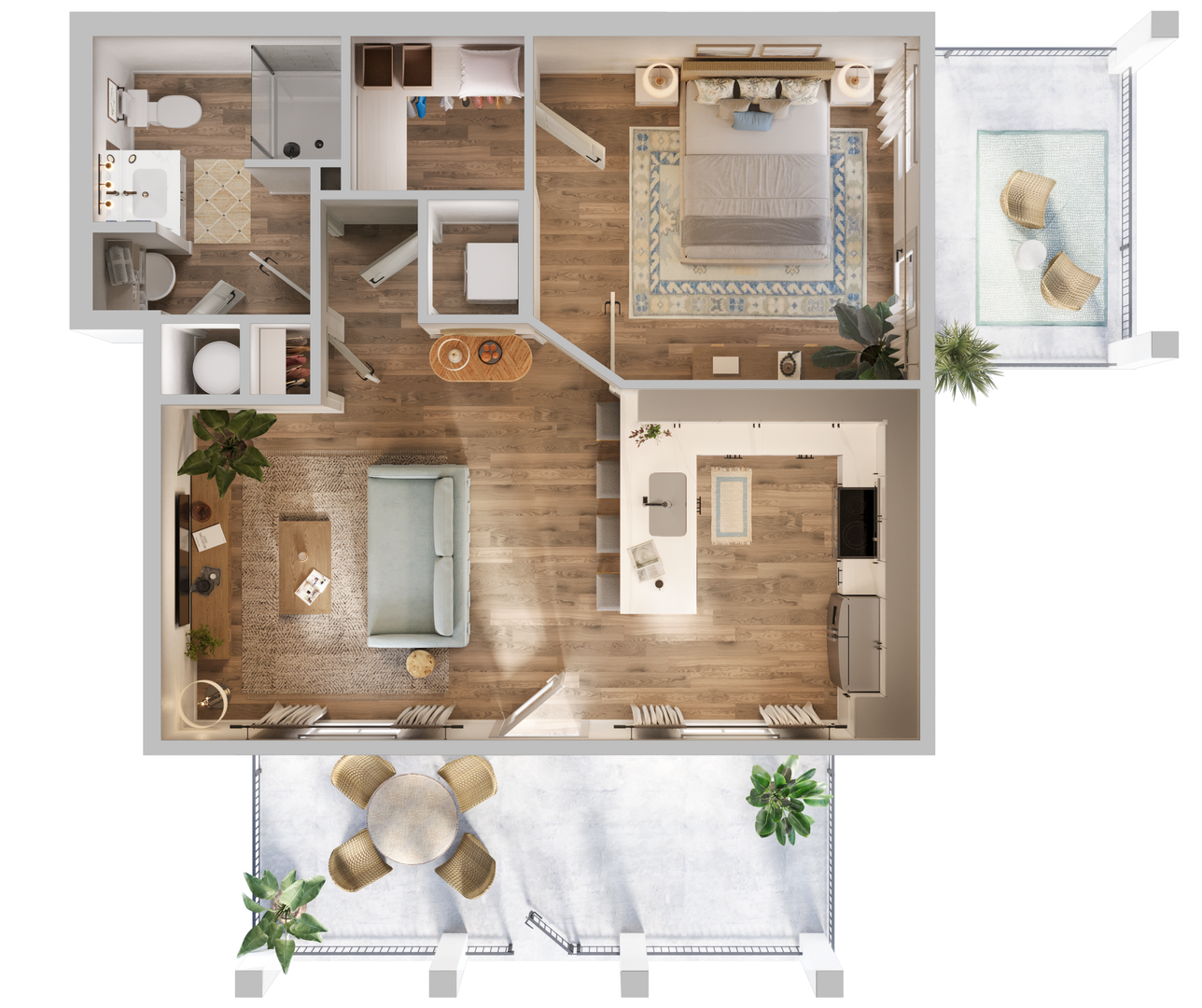 Discover our A1 Floor Plan – a beautifully designed 1-bedroom, 1-bathroom layout offering 644 sq. ft. of stylish living space. Each apartment features sleek stainless steel appliances, a full-size washer and dryer, and upscale finishes throughout for a modern, comfortable lifestyle.