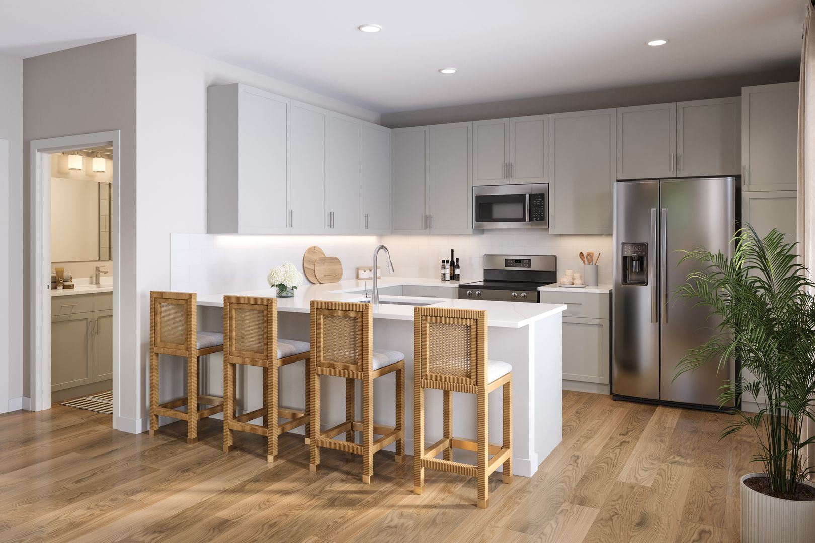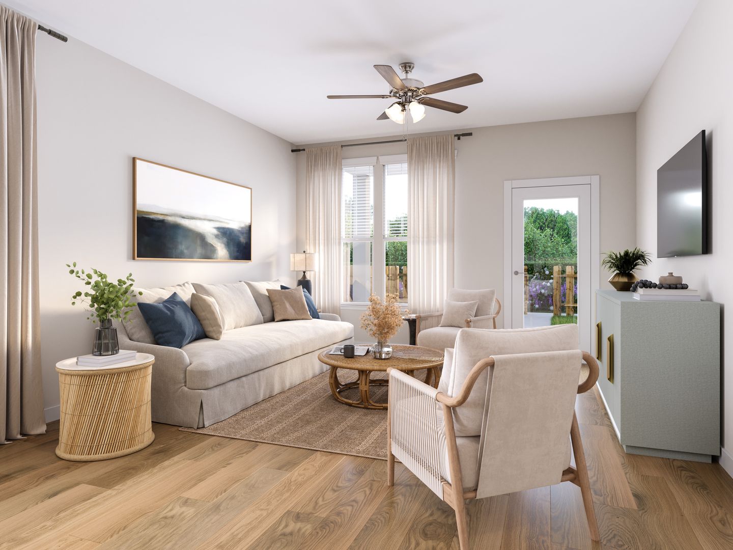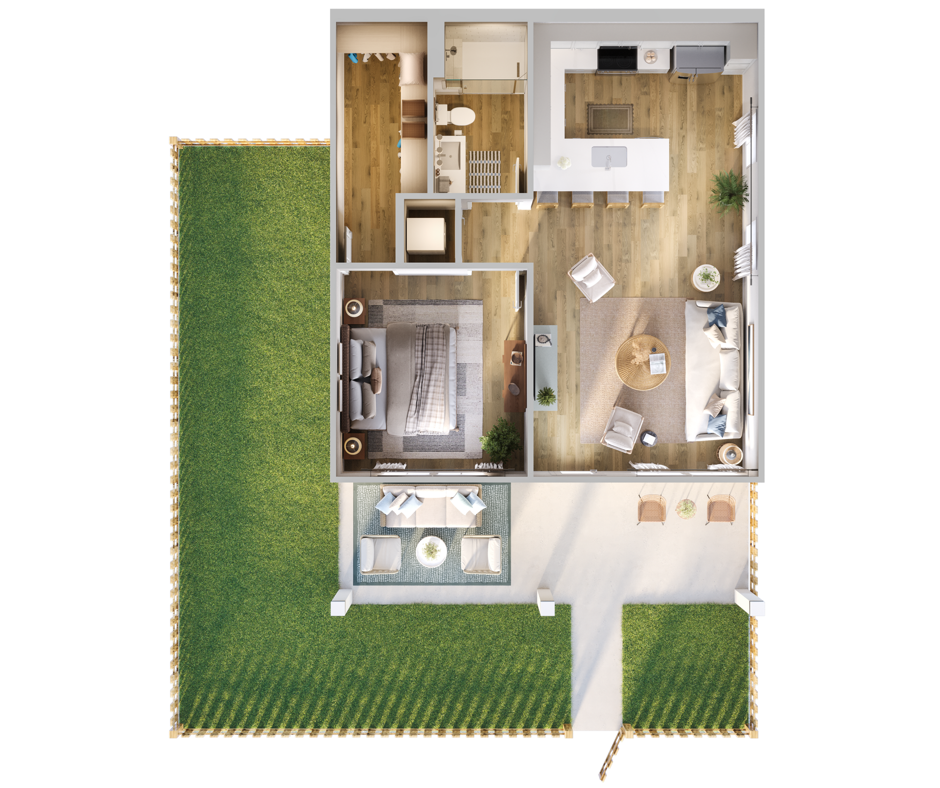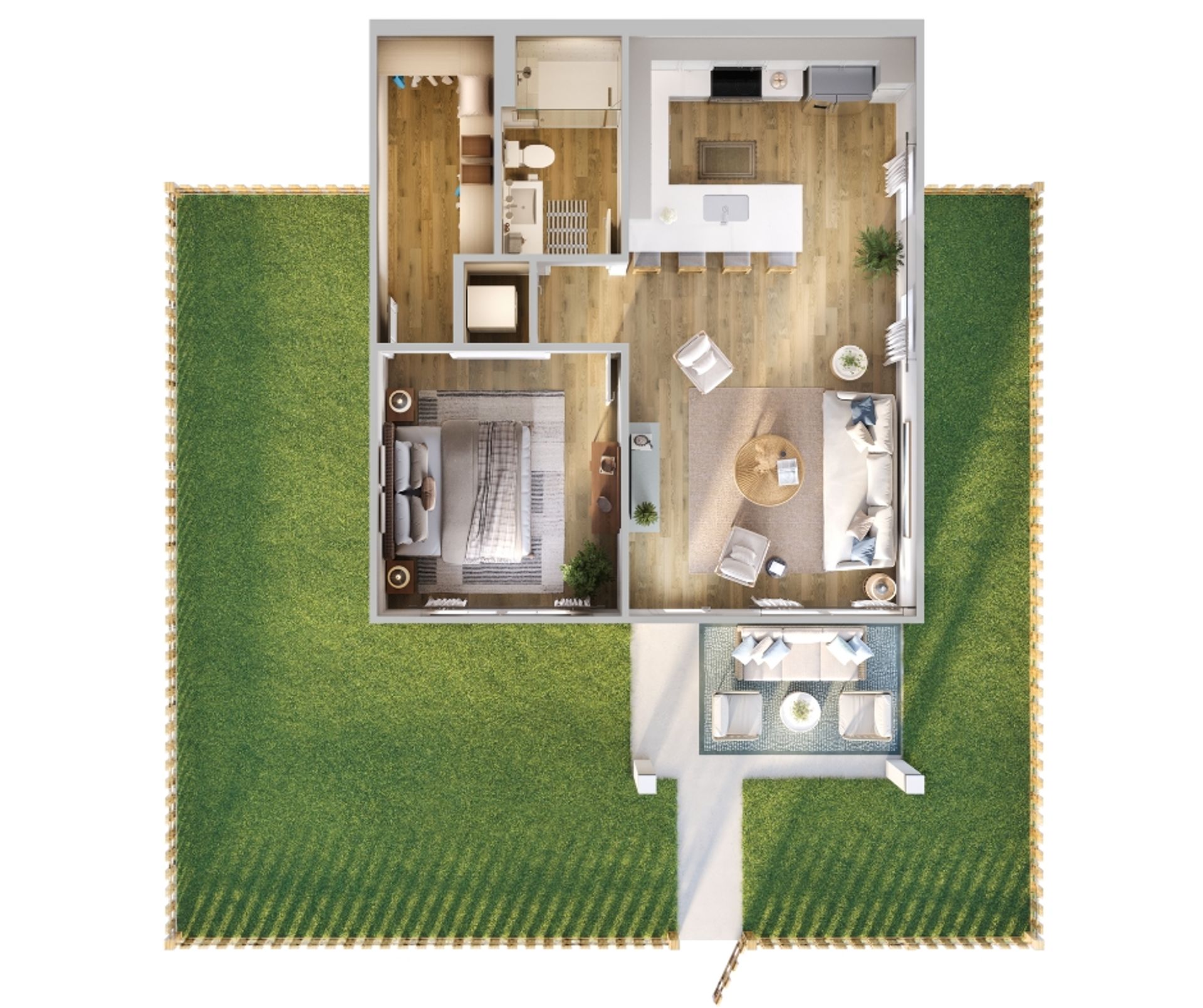 Discover our A3 Floor Plan – a beautifully designed 1-bedroom, 1-bathroom layout offering 728 sq. ft. of stylish living space and a fenced in private front yard. Each apartment features sleek stainless steel appliances, a full-size washer and dryer, and upscale finishes throughout for a modern, comfortable lifestyle.